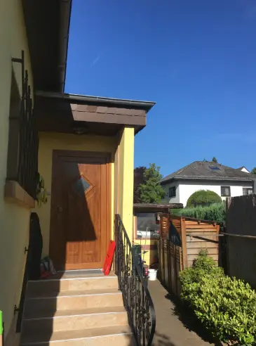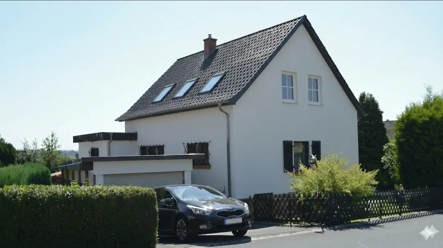Ersetzung eines Walmdachs durch ein neues Satteldach mit erhöhter Kniestockwand und einer Gaube zur Schaffung zusätzlicher Wohnfläche im Dachgeschoss.